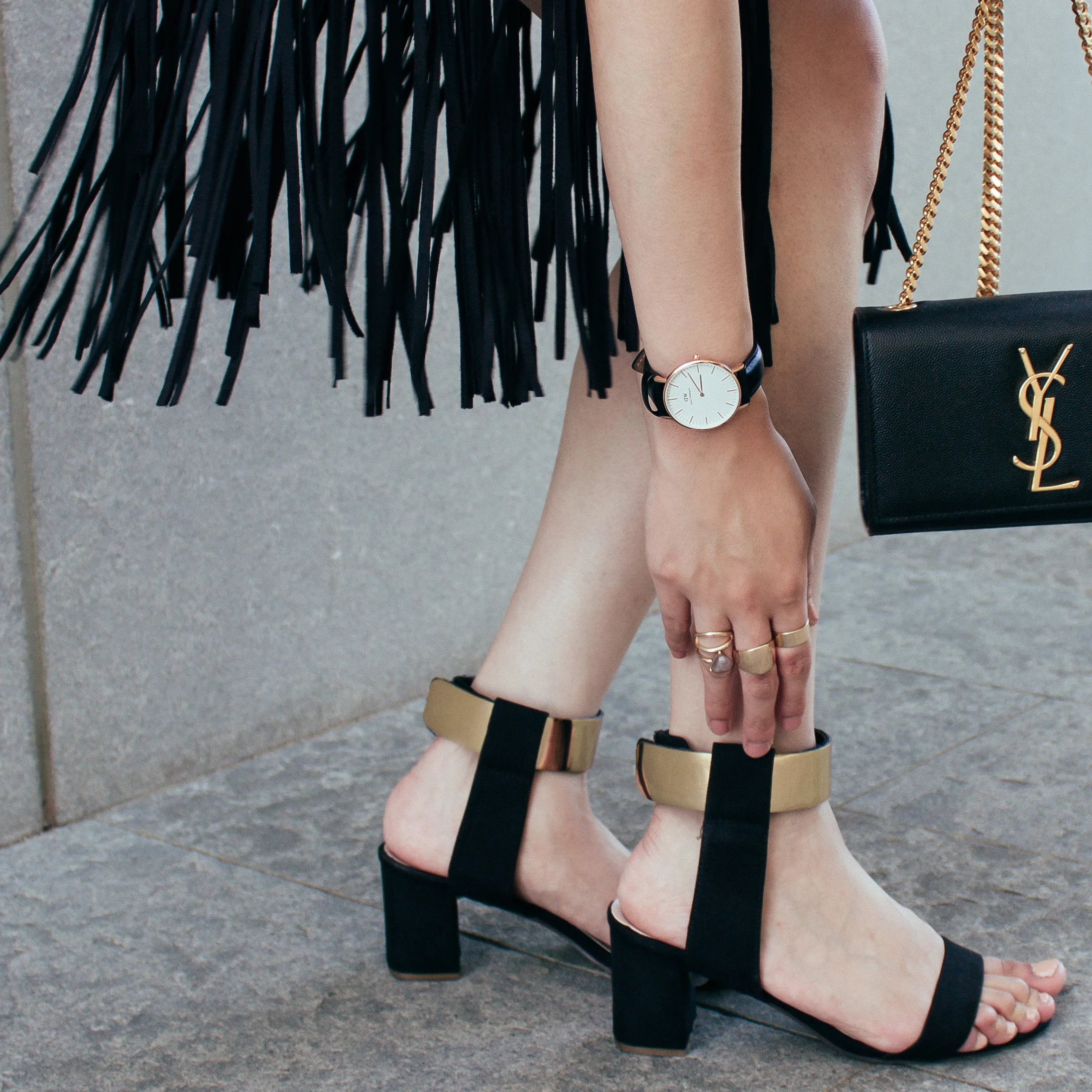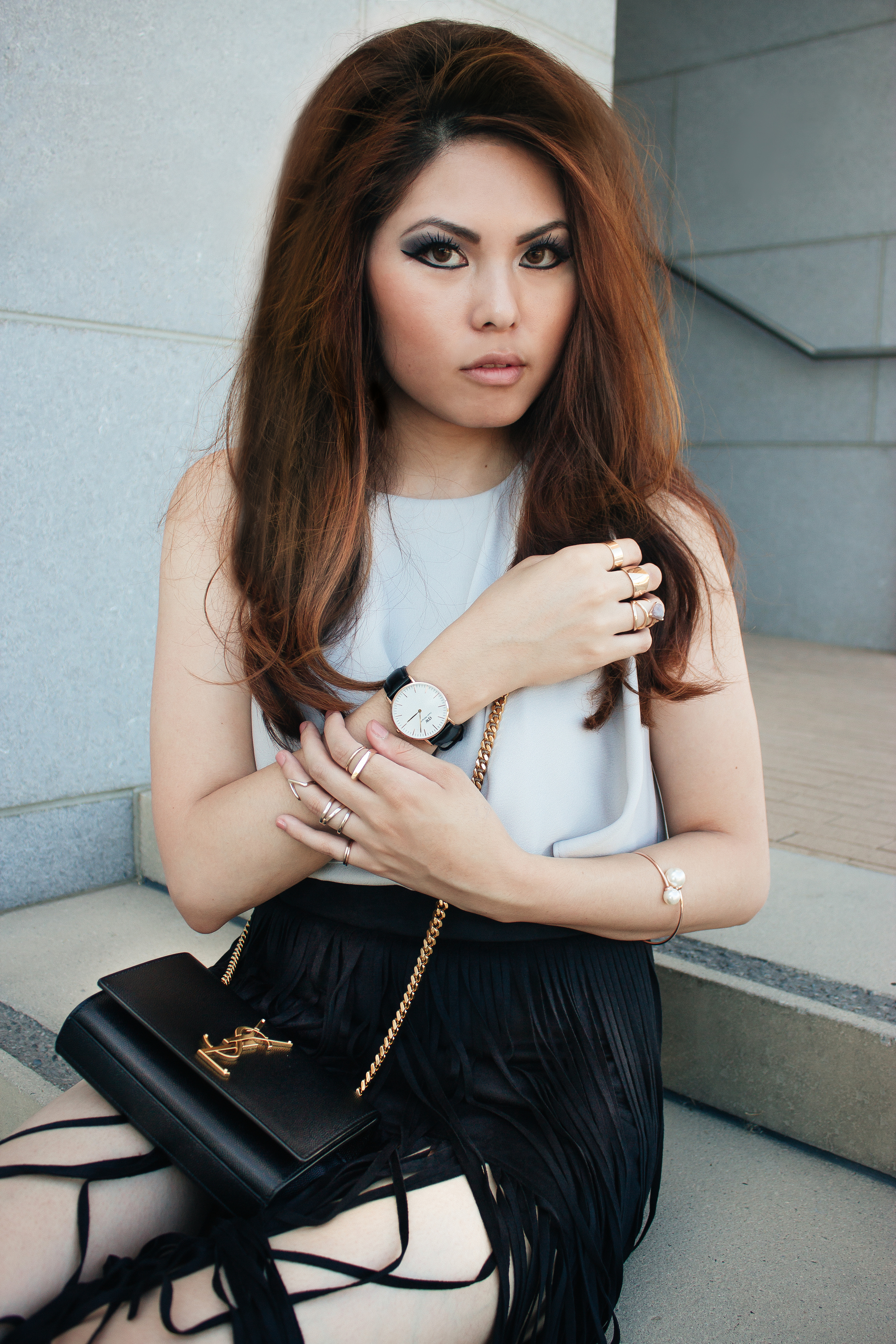 Careese Quon October 8, 2015 The Fringe Skirt Careese Quon October 8, 2015 Fringe Skirt (here)Gold Ankle Strap Heels (here)Daniel Wellington Watch (here)Saint Laurent Paris Bag (here)