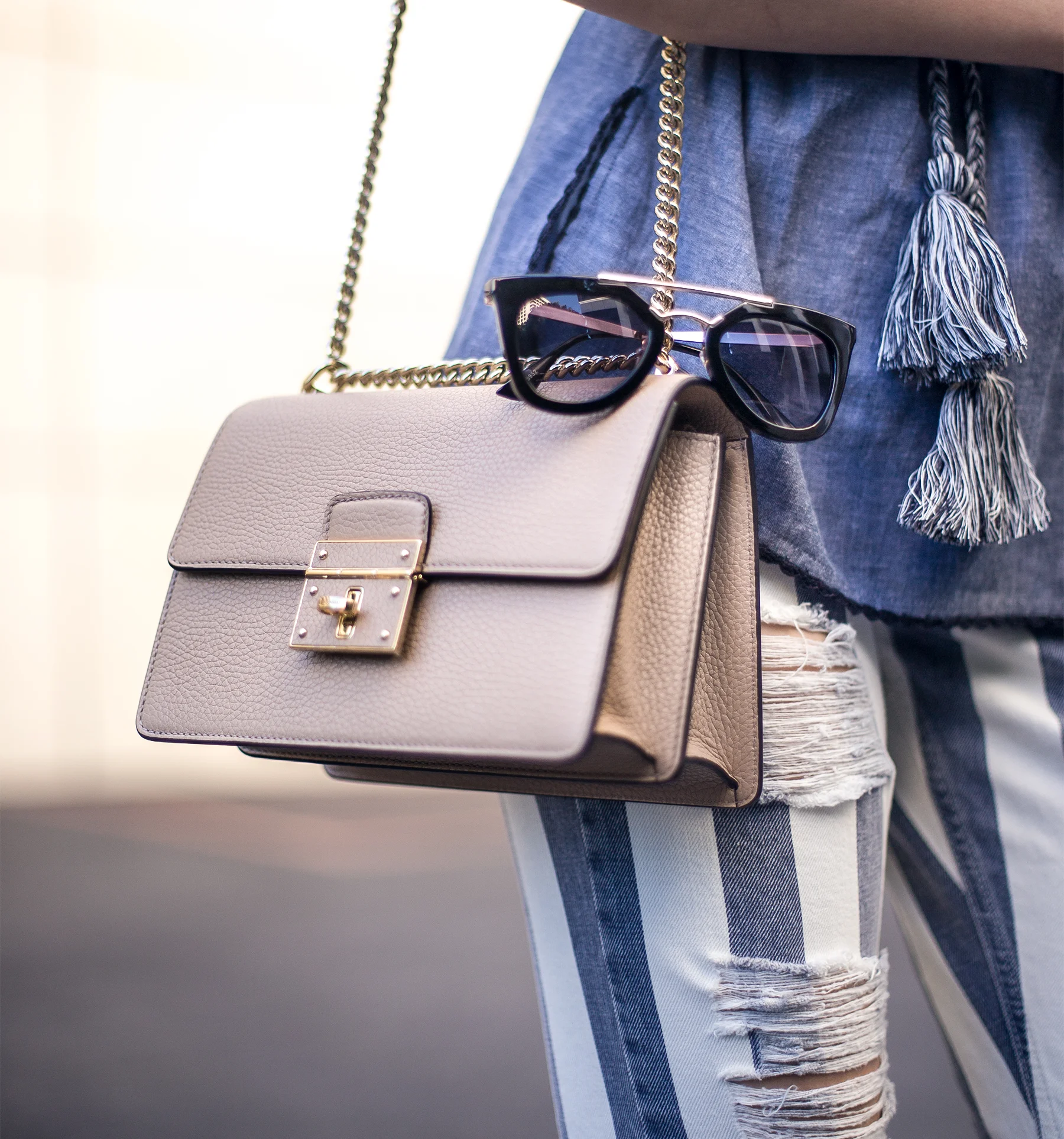 It's summer, but there's no reason to be uncomfortable in the heat! Lightweight cotton blouses like this Helena Stitch Top from French Connection are great summer wardrobe staples that certainly beat the heat! Pair it with striped jeans like the ones here and these wedges here. On a hot summer day, sunglasses are essential. But rather than splurging on an expensive pair that'll bore me (or break!) by next season, I've gone with the affordable yet trendy option by Choies that are available here. Who can resist the occasional designer knock off? On the flip side, I totally splurged on this D&G bag from Nordstrom. What's better is that you can get 70% OFF your Nordstrom purchase with this coupon!
